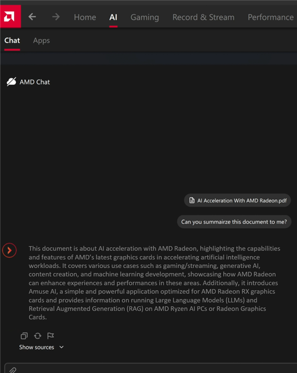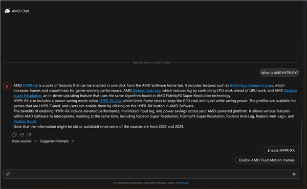 二是AMD Chat,基于GPU加速的离线聊天助手,可按需生成文本、图片,也可以回答用户关于AMD显卡的问题、帮忙开启关键功能。