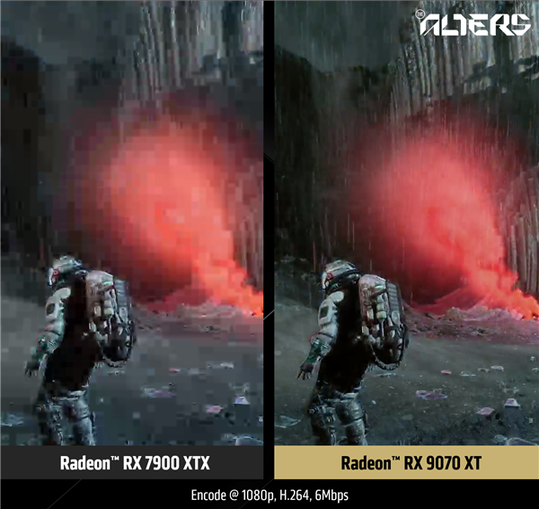 RX 9070系列内置的编码器进行了重新架构设计,性能、画质更佳,支持HEVC、AV1编码,最高支持8K75fps。