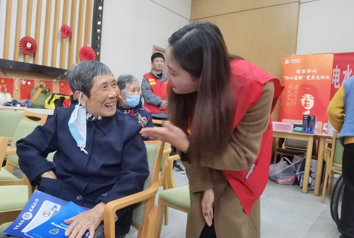 在姑苏区,苏州移动姑苏区分公司联合姑苏区内电、水、气、讯、视、医、公安力量,走进苏州天易西园护理院,开展“集成服务解民忧温情守护‘夕阳红’”学雷锋活动,为护理院50多位老人提供反诈宣讲、安全用电和用水宣讲服务。“电水气讯视医警”党员联合服务队在现场设摊位服务,同步为护理院工作人员和老人提供现场医疗义诊、适老化便捷服务、通信套餐优化建议、手机贴膜等多样化贴心服务,收获护理院老人好评。