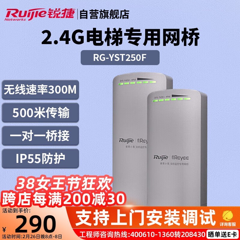 锐捷RG-YST250F:300Mbps电梯监控专户,5G防护的无线网桥,320元高效视频信号解决方案