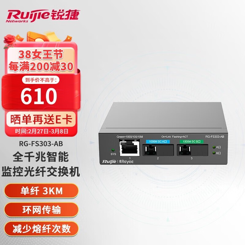 锐捷监控光纤小易交换机:全千兆智能,环网部署保障,专业室外监控的经济高效选择