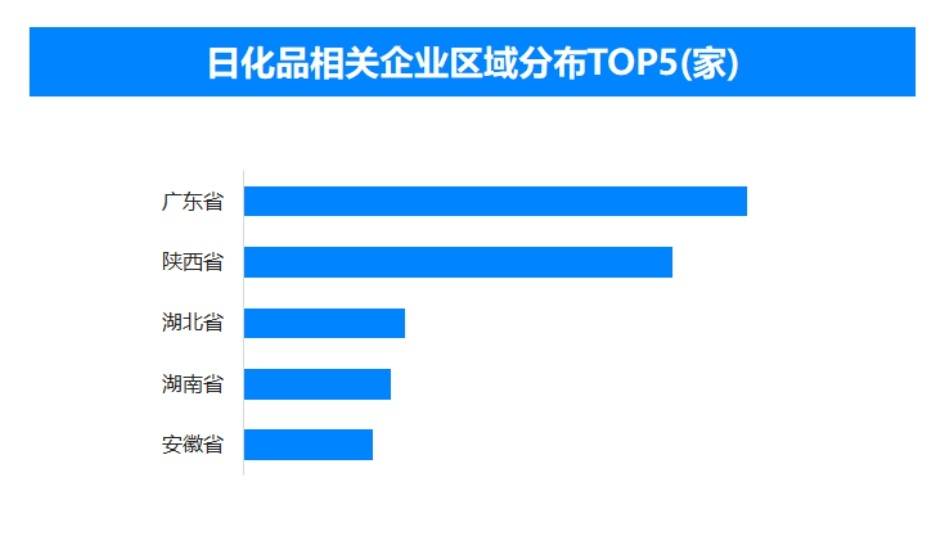 数据显示,截至目前我国现存在业、存续状态的日化品(化妆、护肤等)相关企业超35.2万家。其中,2024年新增注册相关企业超2000家。从区域分布来看,广东省、陕西省日化品相关企业数量位居前列,两个省市数量总和超过13.8万余家,占企业总数的39.4%。排在其后的是湖北省、湖南省和安徽省。