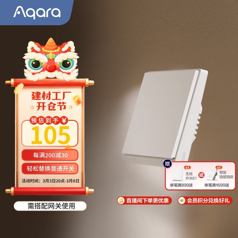 Aqara E1智能墙壁开关优惠,到手价90元