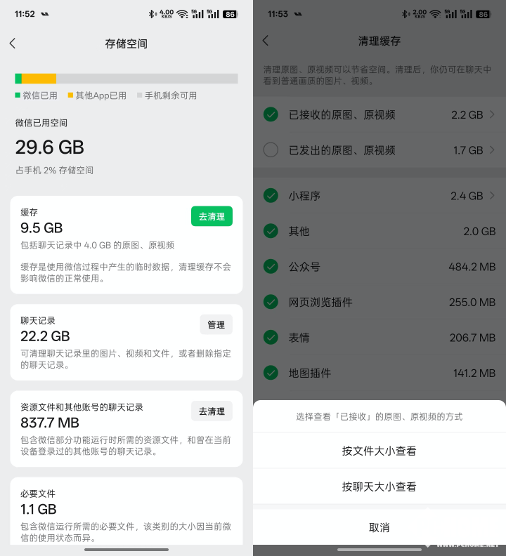 对于很多用户来说,手机中最大的应用或许并不是游戏,而是“小而美”的微信。作为社交软件,由于需要频繁和朋友们分享图片、视频,微信占用的空间动辄几十,上百GB。