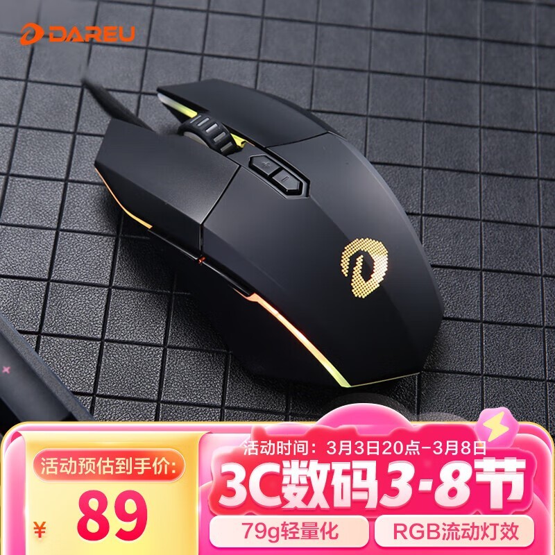达尔优EM910有线鼠标(午夜黑)京东89元