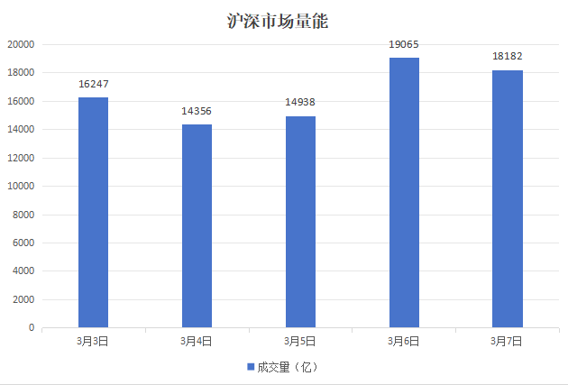 成交量方面,本周A股市场成交量起伏波动较大,3月3日、4日的单日成交量均萎缩至15000亿以下,3月5日明显放量,单日成交量达到19065亿。本周沪深市场成交量平均值为16558亿。