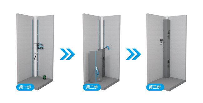 第1步:将杰爱板内衬条粘接在墙面,用带有8mm钻头的电锤及锚固件将内衬条固定在墙面。