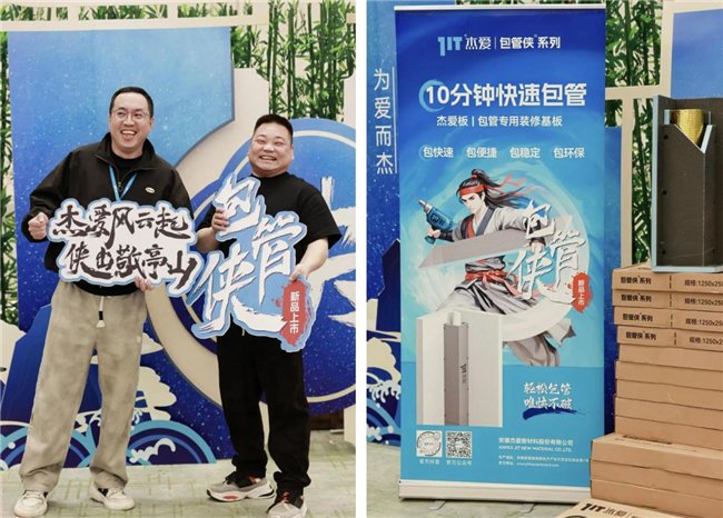 在本次大会上,安徽杰爱新材料股份有限公司重磅宣发2025年度杰爱新品-杰爱包管侠。杰爱包管侠,如同一位身怀绝技的快剑侠客,短短10分钟,便能完成包管!江湖中,速度与效率便是制胜的关键。如此神速的杰爱包管侠,解决传统包管现状痛点:施工效率低、质量问题、材料单一功能、综合成本大等问题。