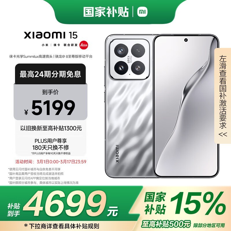 小米Xiaomi 15 5G手机亮银版骁龙8至尊版处理器