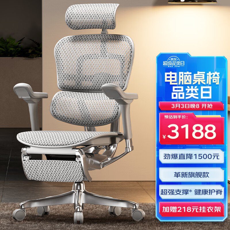 金豪E2代人体工学电脑椅+躺舒宝银白色Q4.0版