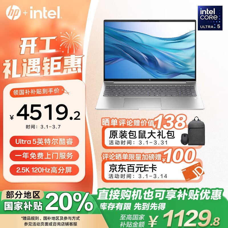 惠普战66七代16英寸轻薄本英特尔酷睿Ultra5处理器32G内存1TB存储