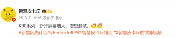曝REDMI K90系列屏幕增至6.8英寸 配备7000mAh电池