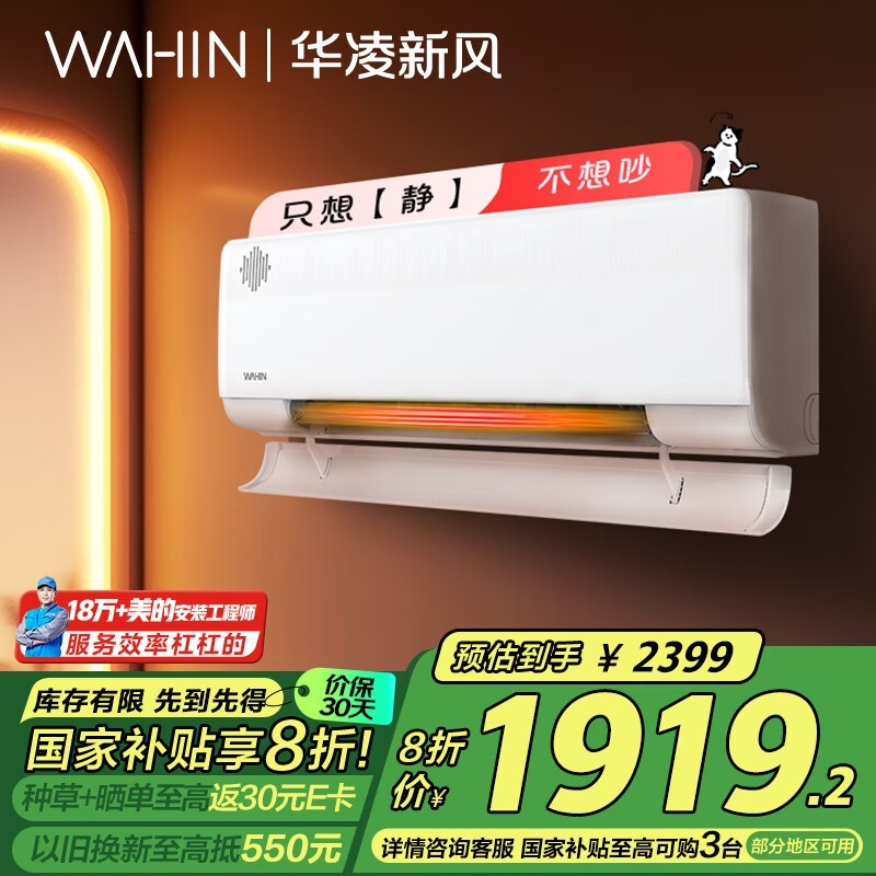 华凌1匹壁挂空调促销,到手价1793元