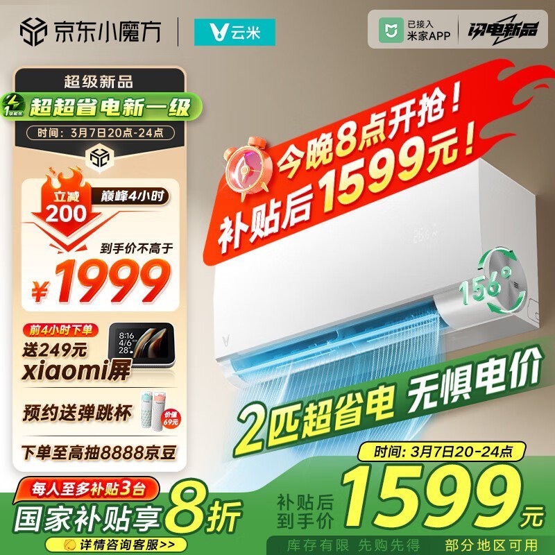 云米2匹智能变频空调挂机1.5匹价格享新品促销京东自营