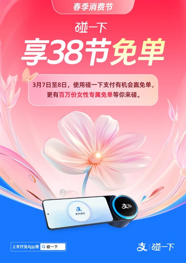 3月7日到3月8日,用“碰一下”支付就有机会赢免单,并且还有百万粉女性专属的免单福利,大家可以尝试一下。