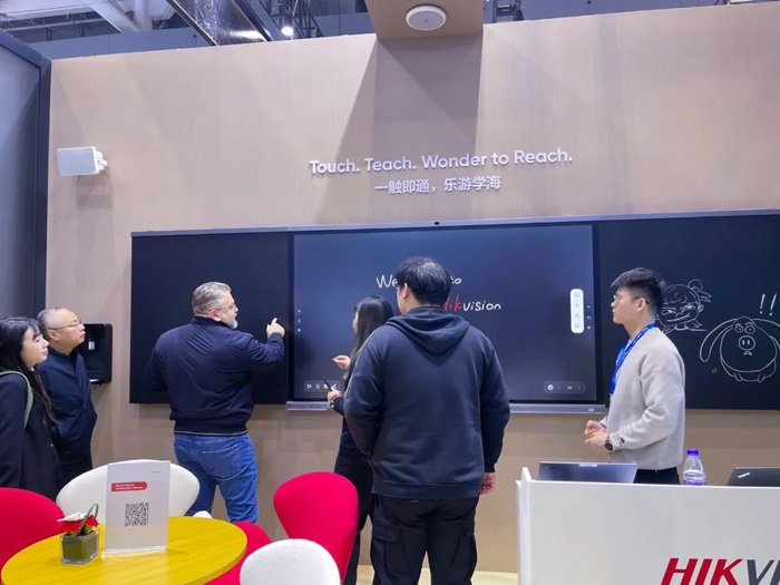 海康威视智能交互屏全栈自研、功能完善,现场展出的这块屏,因AI加持,支持会议语音转文字、中英翻译、会后自动生成会议纪要和待办,带来高效、便捷的体验。除了助力企业数字化转型,这块屏还广泛应用于智慧金融、智慧医疗、智慧生产等多个领域。