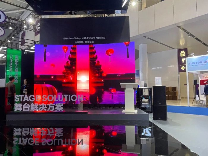 路过舞台,不禁被LED曲面屏吸引,这是海康威视新推出的Aries 租赁系列,造型吸睛,可为企业活动、舞美表演、演唱集会等场合带来出色视觉体验。超高清画面配合出色音响效果,带来震撼视听感受。这块屏宽5米×高3米,体型巨大,实际上安装便利,支持快速拆装,方便转运,舞台部署从未如此简单。