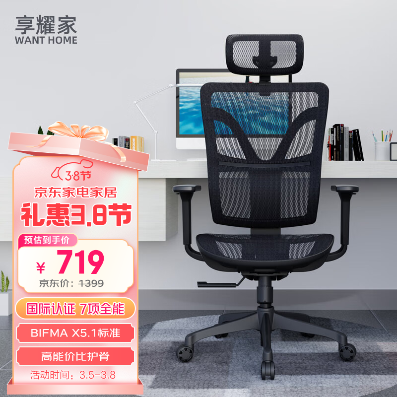 享耀家WantHome Q3人体工学椅幻影黑标准版电脑椅