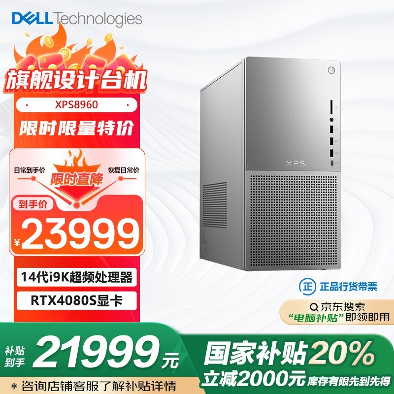 戴尔XPS8960台式电脑i9-14900K京东特惠21499元