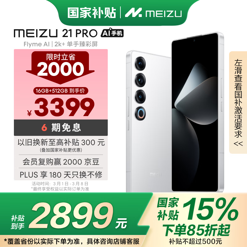 魅族21Pro 5G手机 骁龙8Gen3 16GB+512GB 魅族白 2K直屏