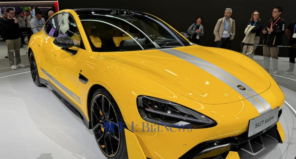 小米展台上展出的这款车型在手机展前一周刚刚发布,其运动型闪电黄涂装吸引了众多粉丝。与我们去年首次看到的同款蓝色 SU7 相比,这款电动车的外形明显更时尚、更运动。这是该车的性能版,原型车已经打破了纽伯格林四门轿车的单圈记录,官方计划于今年晚些时候使用量产车型进行尝试。