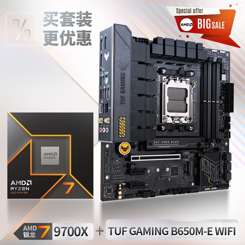 华硕TUF B650M-E WIFI主板+锐龙7 9700X京东好价2734元