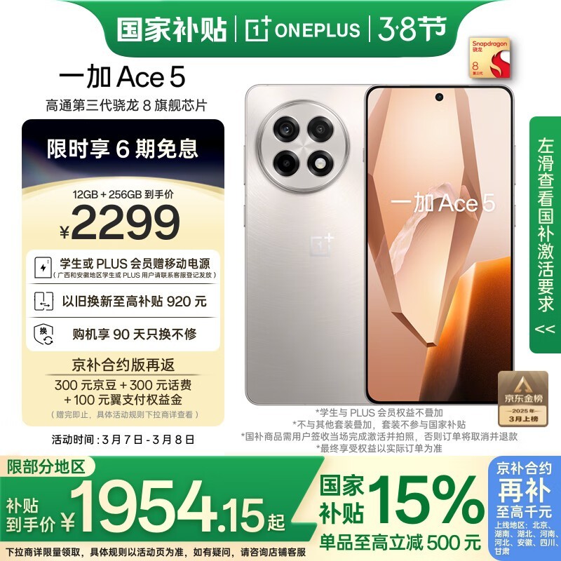 一加Ace5手机12+256G引力钛5G性能强到手1733元
