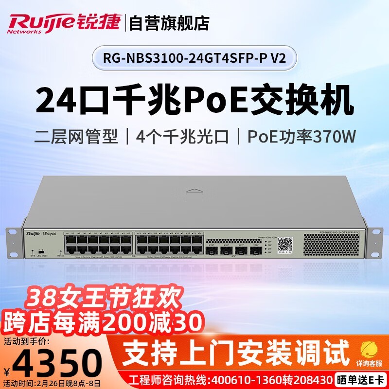 锐捷RG-NBS3100-24GT4SFP-P V2:高效千兆POE交换机,商业空间的理想网络加速器