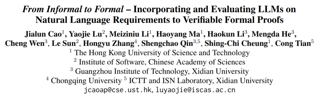 论文标题:From Informal to Formal–Incorporating and Evaluating LLMs on Natural Language Requirements to Verifiable Formal Proofs