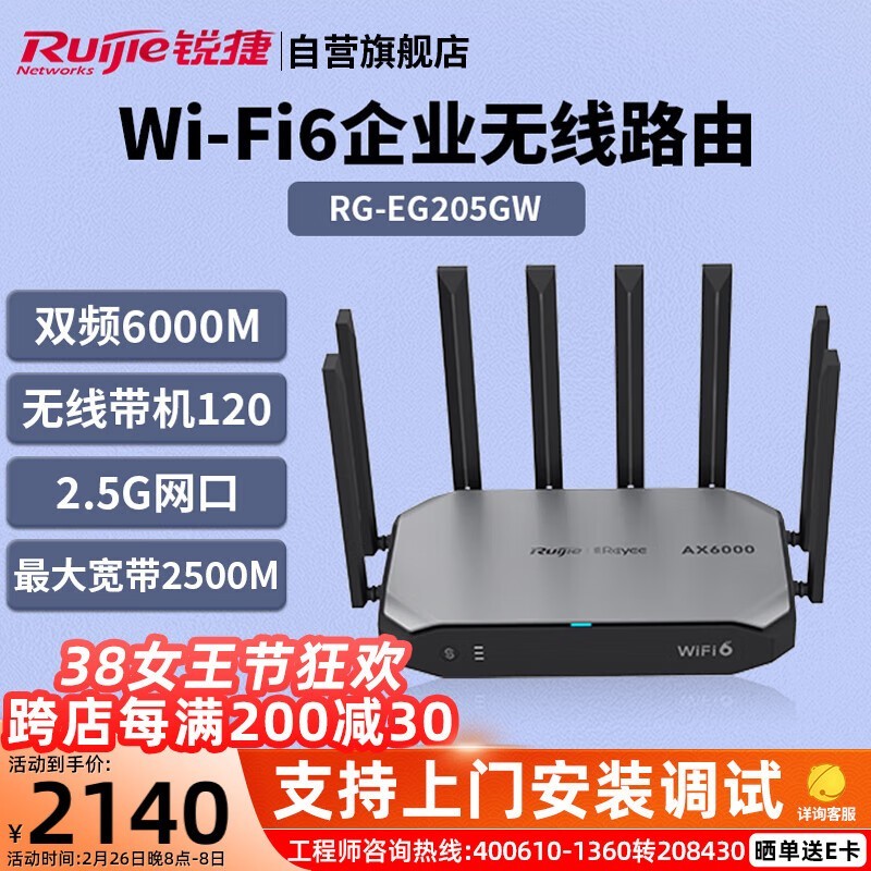 锐捷RG-EG205GW:企业级WiFi6千兆路由器,2.5G疾速传输,高性价比网络强化器