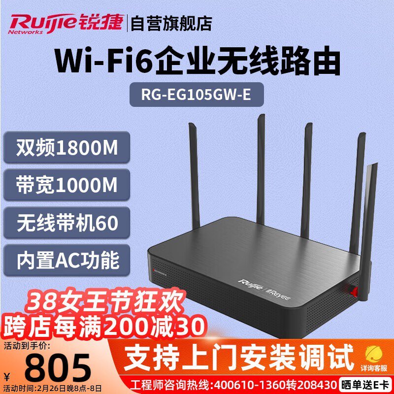 锐捷RG-EG105GW-E:双频WiFi6企业级网关,多终端高速连接,925元高效办公解决方案