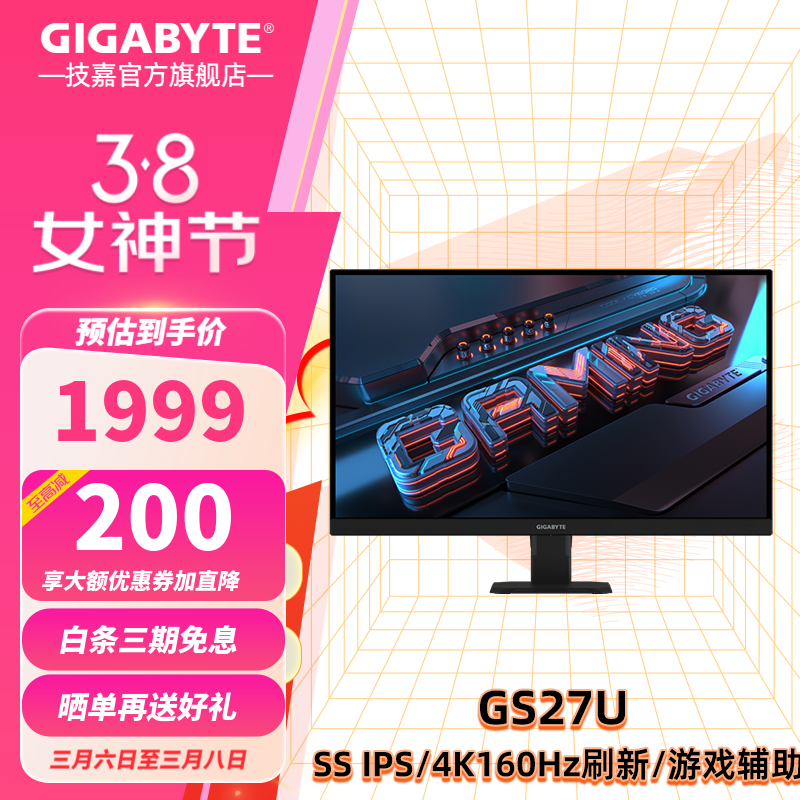 技嘉GS27U 4K电竞显示器:2K直面设计,IPS色彩精准,160Hz游戏狂潮,2199元性价比之选