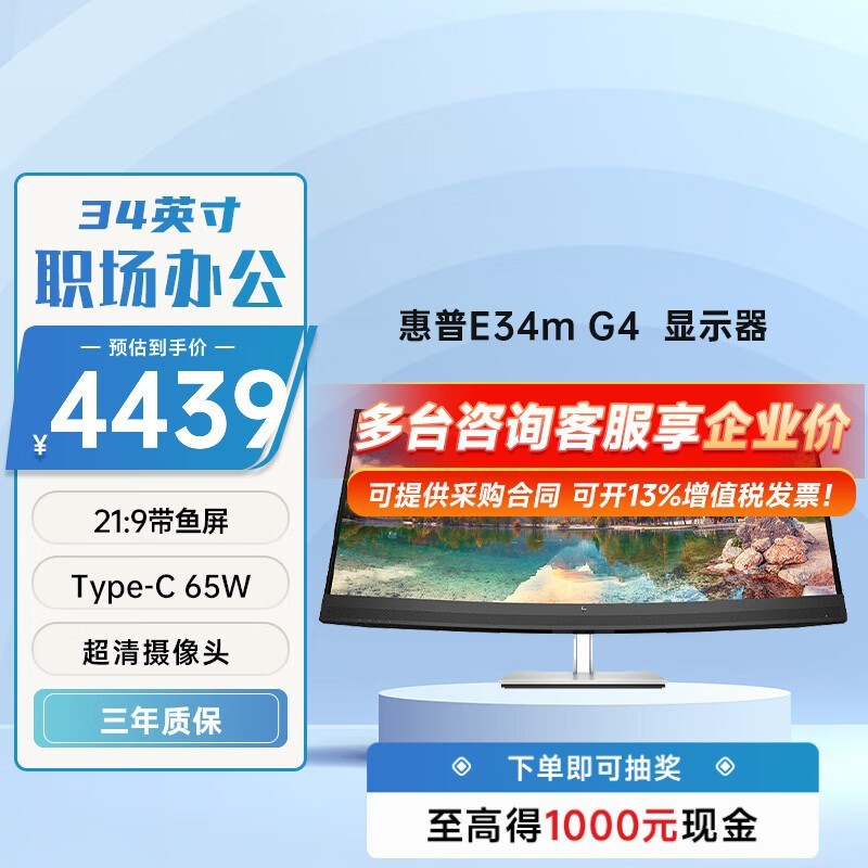 惠普E34m G4:专为设计师与商务人士打造,34英寸曲面准4K显示器,提升工作效率的视觉利器