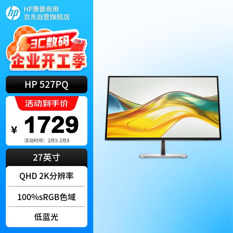 惠普527PQ:2K高清IPS显示器,专业设计,24/7色彩精准,1729元起享舒适视觉体验
