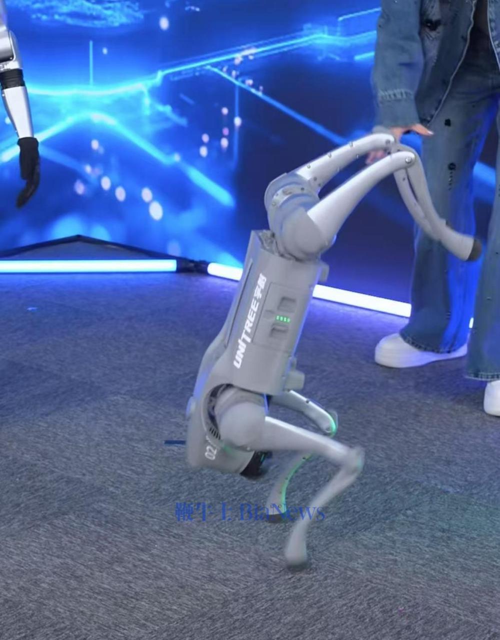 直播中,Go2机器狗展示了握手、跳舞、打招呼,以及“拿大顶”等动作。
