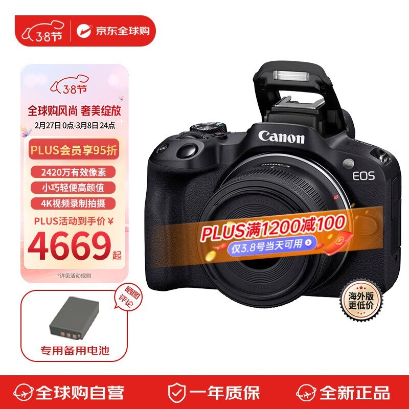 佳能EOS R50微单相机京东国际优惠价4919元