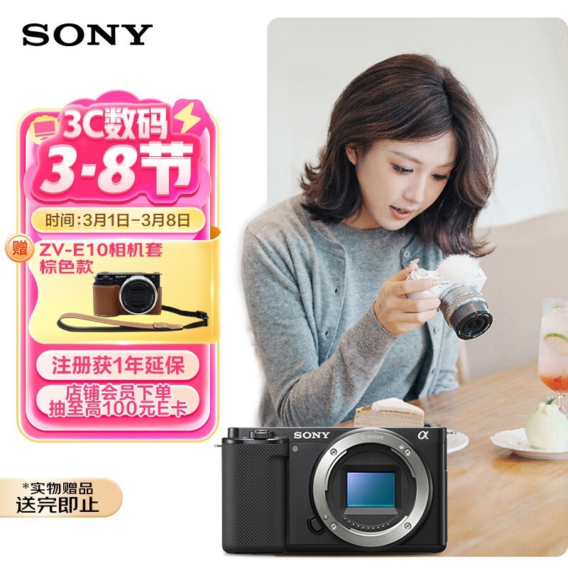 索尼ZV-E10微单相机黑色单机身限时特惠3599元