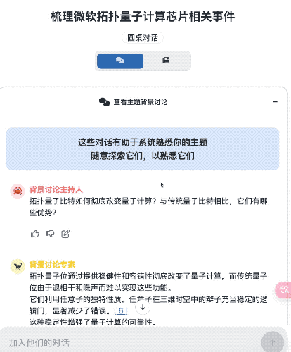 除此之外,这工具还能 “ 角色扮演 ” , cosplay 成一个主持人,搞一个 “ 圆桌会议 ” 。这模式就是让好几位来自不同领域的大模型专家来回答主持人的提问,最后帮你汇总各方观点,得出最终的结论。