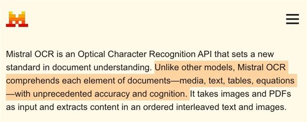 第一个是个 OCR 工具,简单说就是图片识别转化,能把你的 PDF 转换成可以直接复制粘贴的 Word 版。这玩意昨天才刚刚发布,一上来就被称为 “ 世界上最好的文档理解 API” ,是个法国公司搞出来的。
