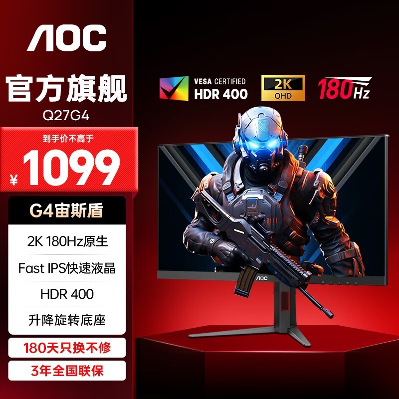 AOC Q27G2SD 27英寸显示器京东1099元到手