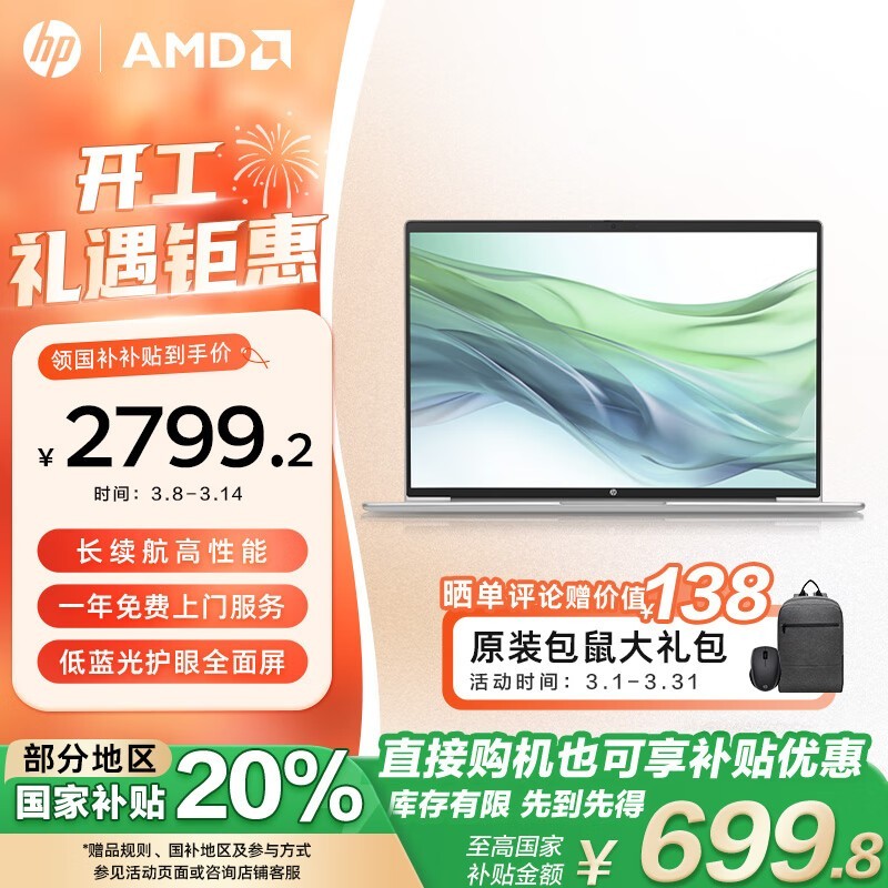 惠普战66七代AMD锐龙本京东优惠价2705元