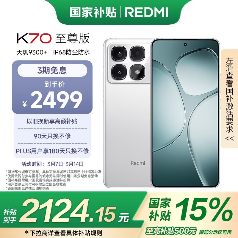 Redmi K70 至尊版 5G手机 12GB+512GB 晴雪白 1977元超值入手