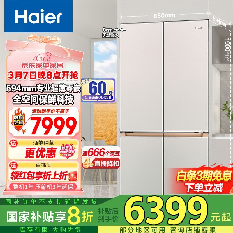 海尔509L冰箱优惠多,到手价6149元