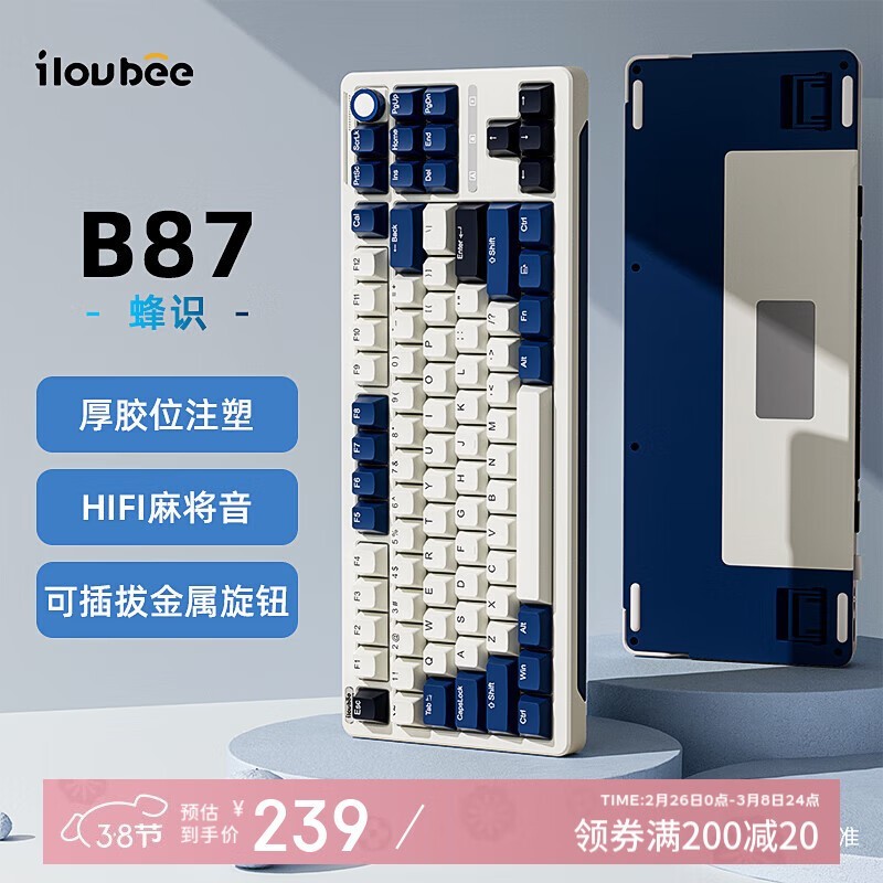 艾卢比ilovbee B87机械键盘客制化三模无线京东239元到手