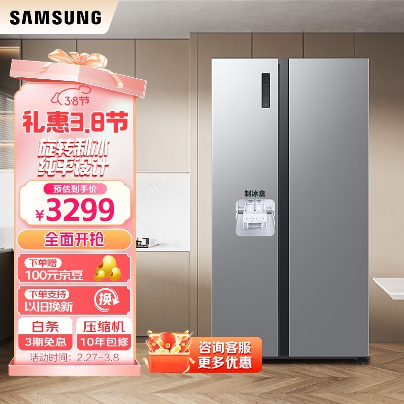 三星516L双开门冰箱,满减后3239元