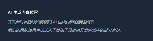 但侧面回应还是有的,上个月,Steam上的《使命召唤:黑色行动》商店页面里,新增了游戏关于AI内容的说明,直接承认了使用AI开发游戏部分素材的事实: