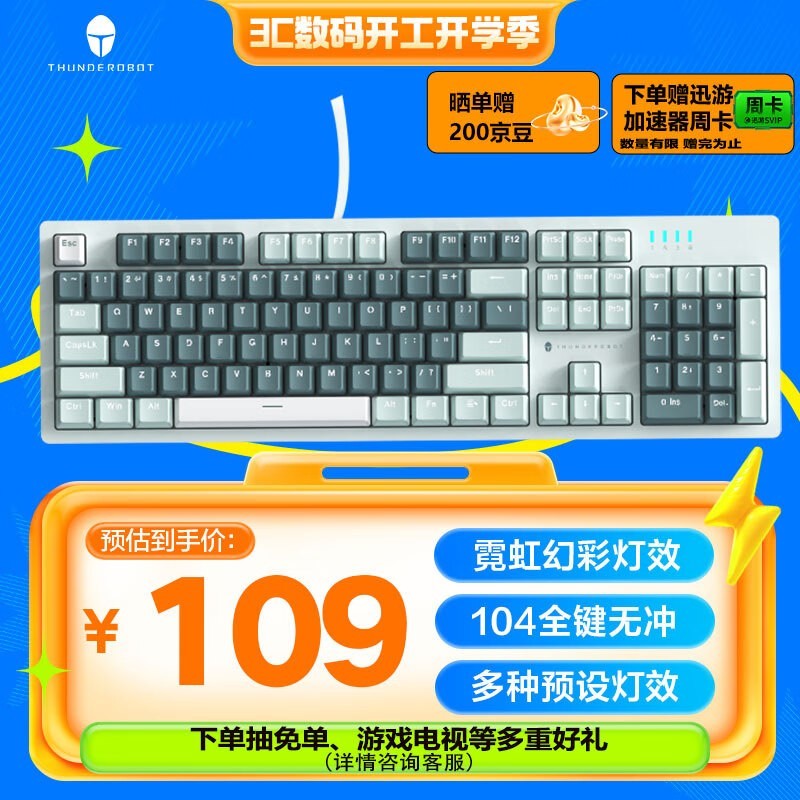 雷神K104薄荷有线机械键盘京东仅售109元