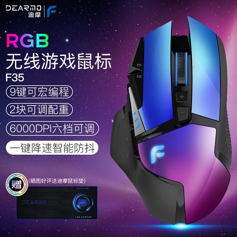 迪摩F35无线双模鼠标极光蓝6000DPI高精度仅139元
