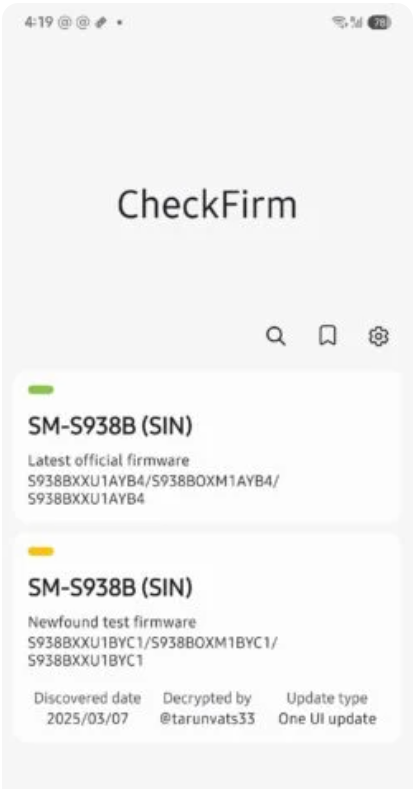 知名爆料者“Tarun Vats”在X平台上透露,他在三星服务器上发现了S25 Ultra的新固件,版本号为S938BXXU1BYC1。根据三星固件编号规则,该固件很可能是基于Android 16的One UI 8.0,并且比往常提前近两个月出现。