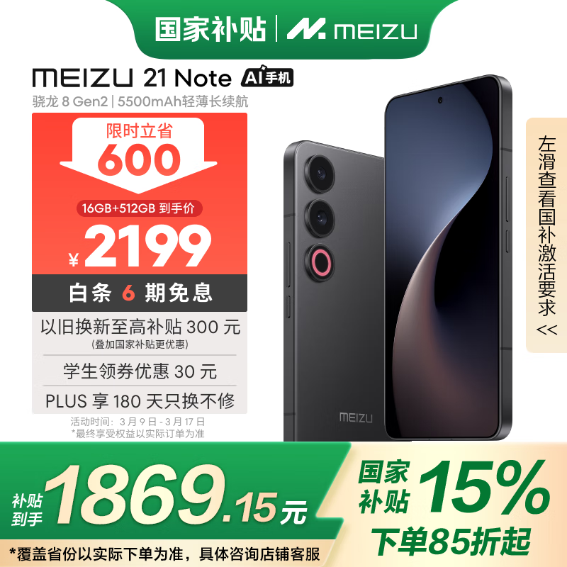 魅族21 Note 5G手机促销:16GB+512GB无界黑,到手仅1733元!